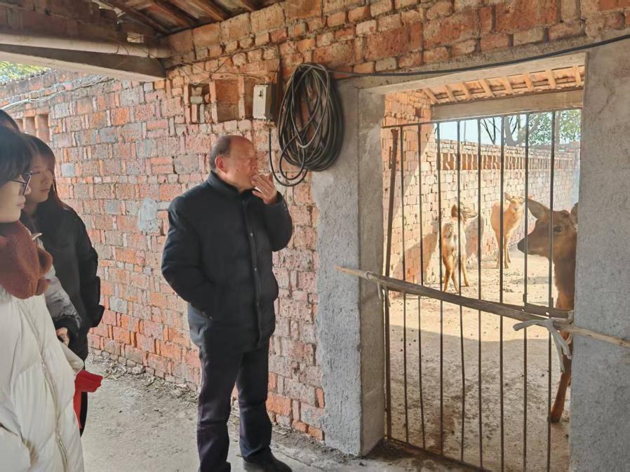 實踐最后一站來到省級示范合作社——南夏墅梅花鹿養殖基地。跟隨“新農人”王場長,同學們深入了解“林—草—鹿”生態循環模式,觀看飼料配制、鹿茸采集等生產工序。針對產品銷路問題,王場長表示在政府直播助農扶持下,鹿茸酒、鹿肉制品等特色農產品拓寬了銷售渠道,小鹿經濟正在時代的新機遇下裂變新生。此外,基地還積極探索“農業+旅游”模式,吸引游客前來參觀體驗,帶動周邊經濟發展。