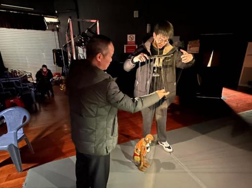 互動體驗環節是本次探訪的重中之重,在傳承人的指導下,實踐隊員親自上手操作木偶,嘗試“行云流水”“喜怒嗔癡”等基礎動作,切身感受到“一牽一引,百態人生”的技藝魅力。這是一場融歷史觀照、技藝解密與沉浸體驗為一體的非遺課堂,讓年輕學子在木偶的騰挪顧盼間觸摸到傳統文化的溫度,更在提線交錯的實踐中體悟到匠人“以心馭偶”的傳承真諦。