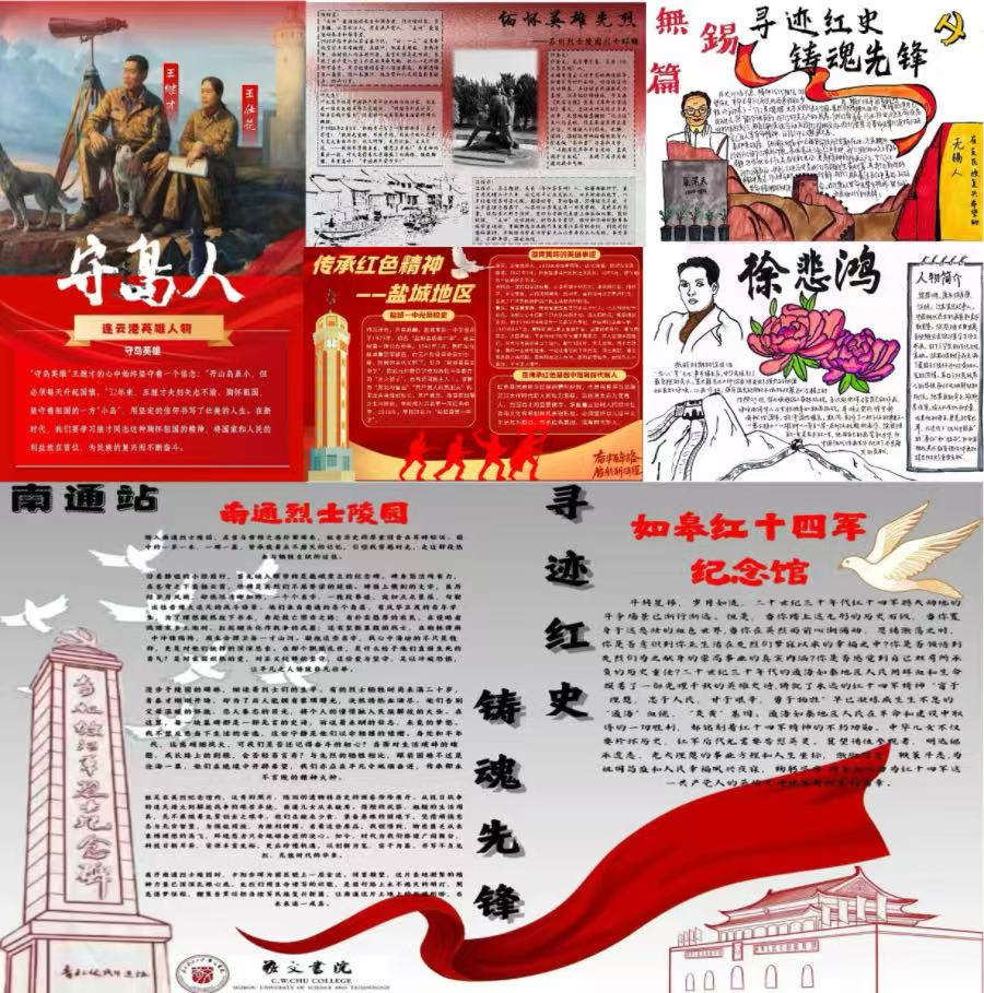 通過設計繪畫實踐人物小報,設計調查問卷、制作《尋跡紅史·江蘇》微紀錄片特輯、設計團隊海報等方式,以“學、講、行”立體化實踐模式,實現了自我教育與輻射社會的雙重成效。