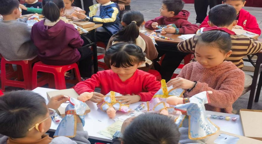 蛇年新春,社會實踐隊來到中共福建臨時省委舊址,參加了“木偶送賀新春”活動;顒影ㄓ^看布袋木偶戲和手工DIY木偶。舞臺上,《英雄王二小》剛結束,《武松打虎》就登場,木偶們靈動的表演吸引著孩子們的目光。這些故事通過木偶重現,仿佛從歷史中走出。社會實踐隊在享受視覺盛宴的同時,也感受到布袋木偶戲作為閩南文化符號,為蛇年增添了濃郁的年味。