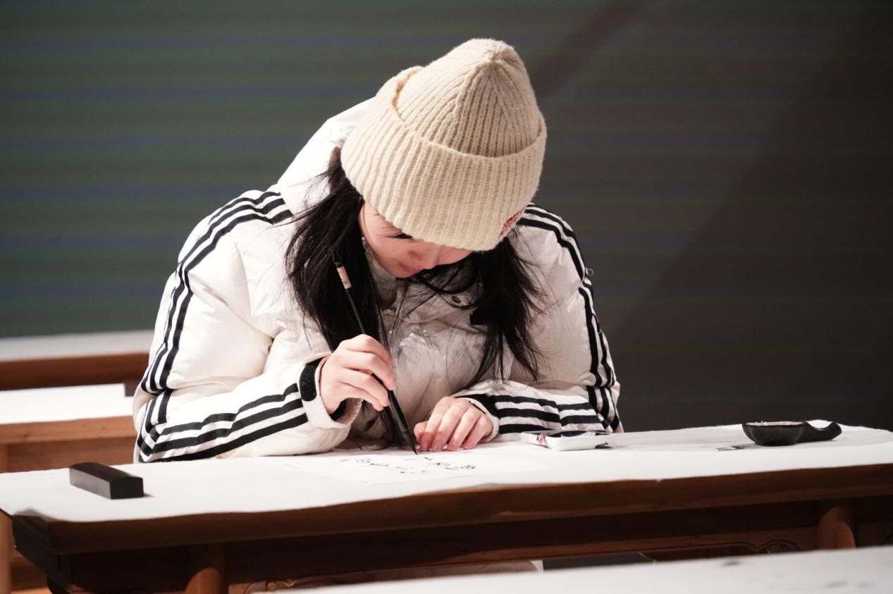 圖為實踐隊員在孔子博物館中學習書法相關知識。通訊員 龔炫瑋 攝