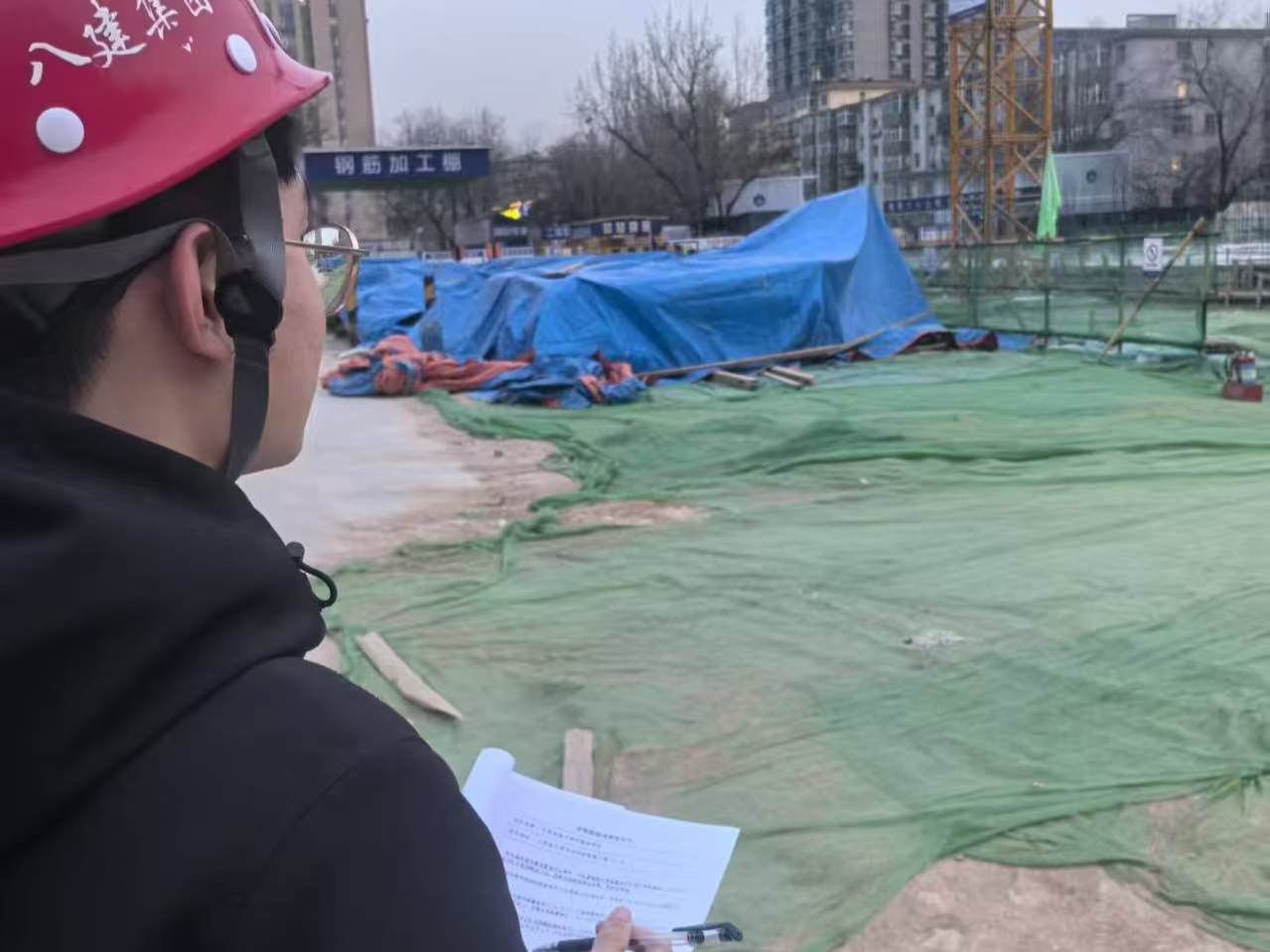 在實習期間,劉藝輝參與了集團的太原市實驗中學學生宿舍樓及室外運動場所建設的工程項目,在前輩們的指導下,他參與了地基驗槽檢查工作,參與學習制作了工程人工費投標報價表和工程造價單,學習了如何控制成本,以及施工相關的安全檢查工作。(劉藝輝在學習進行地基驗槽)