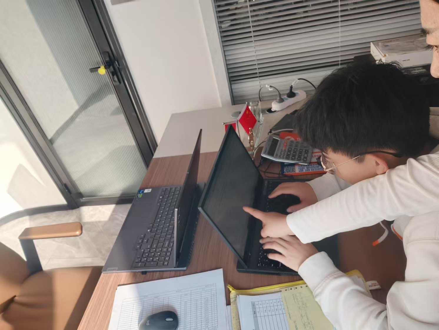 (劉藝輝在公司前輩指導下學習制作工程造價單)