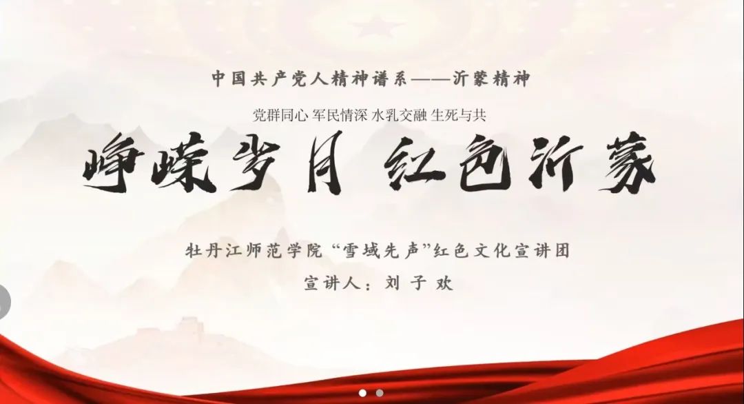 為傳承紅色基因,弘揚愛國主義精神,深入了解沂蒙精神的內(nèi)涵與價值。我院“雪域先聲”紅色文化宣講團與青島科技大學(xué)經(jīng)濟與管理學(xué)院“尋韻紅跡,青春鑄魂”志愿宣講團,于1月11日晚7時在線上聯(lián)合開展沂蒙精神宣講活動。本次活動由我院2024級研究生陳連欣主持,我院宣講團成員李思頤、劉子歡,青島科技大學(xué)宣講團成員高露、郭一諾主講,牡丹江師范學(xué)院馬克思主義學(xué)院與青島科技大學(xué)經(jīng)濟與管理學(xué)院2024級部分本科生參加。