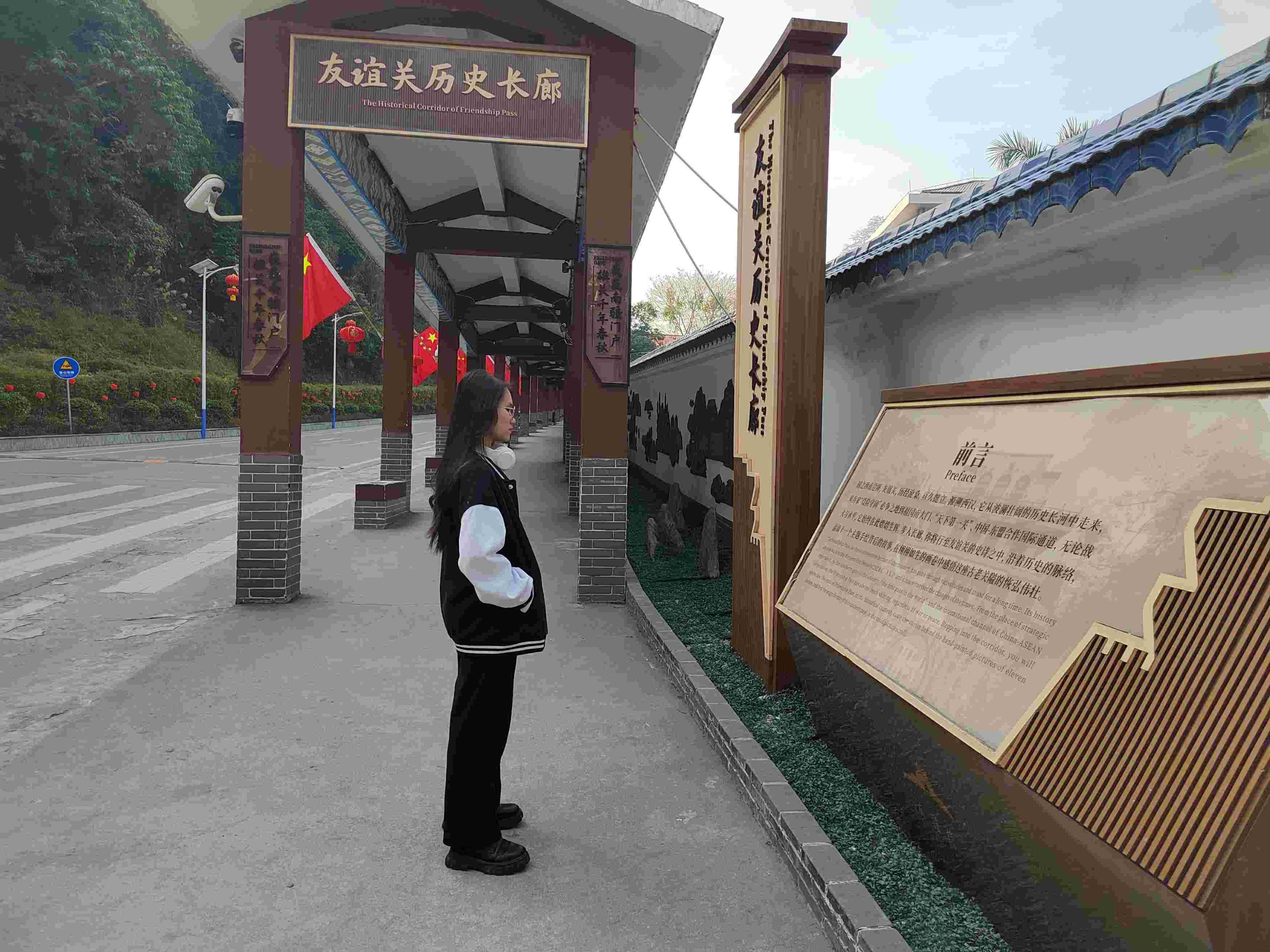 最后語言景觀實踐隊來到友誼關歷史長廊進行參觀。友誼關有著悠久的歷史,這座古老的關隘經歷兵家必爭的歲月,度過作為祖國南大門和“天下第一關”的時光,如今也成為了中國與東盟的國際合作通道。實踐隊員們通過走過歷史長廊,認真了解友誼關的歷史脈絡,回顧友誼關數千年的歲月故事,切身感受到愛國主義作為民族精神的核心,弘揚愛國主義精神對于鑄牢中華民族共同體意識,維護民族邊境地區的穩定具有重要意義。