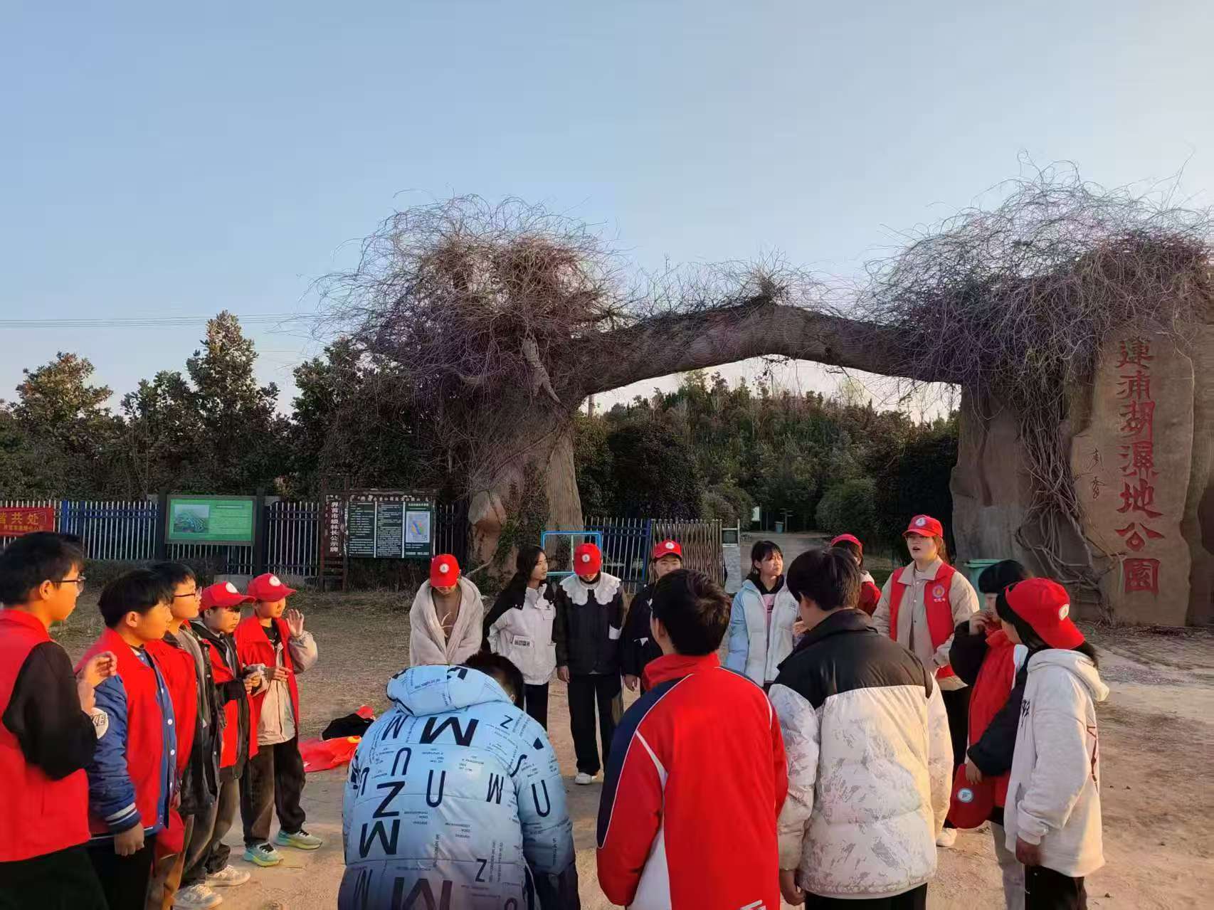 小徑轉角處的油菜花開得正盛,吸引著蜜蜂嗡嗡作響。隊伍停留在安徽省蓮浦湖濕地公園的門前,接待的李主任熱情地安排學生們進行簽到和分發禮物,引導大家觀看公園簡介,使得同學們對本次探查的地方有一個初步的了解。隨后,便帶領我們進入公園,初步入公園的大門,撲面而來的微風攜著絲絲涼意,似乎在歡迎我們的到來。一路上,李主任為我們講解濕地公園的重要性和里面的草木設施,作為志愿者的我也深受啟發。
