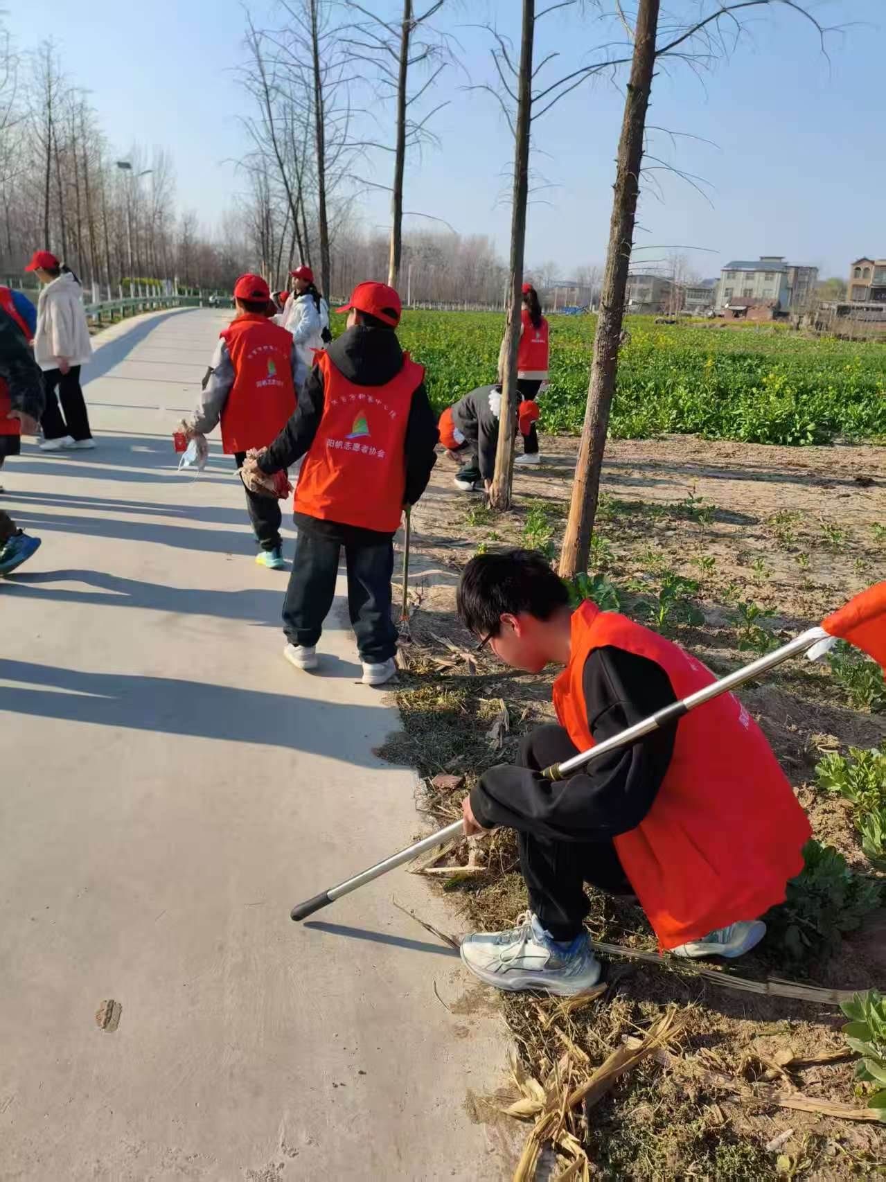 志愿者和同學們正在拾取路邊垃圾(通訊員 榮佩琪攝)