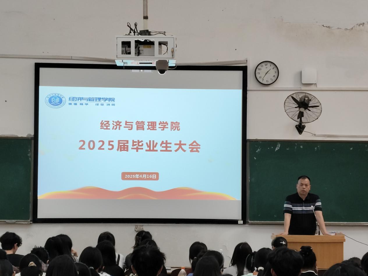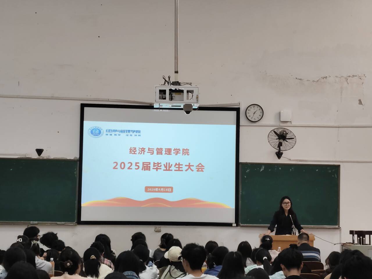 為進一步推動學院畢業生相關工作,提升就業質量和育人成效。4月16日下午,衡陽師范學院經濟與管理學院于外語樓101教室召開2025屆畢業生大會。會議由輔導員廖航瑜老師主持,經管學院黨總支書記凌飛飛、副書記周思敏出席會議,2025屆全體畢業生參會。