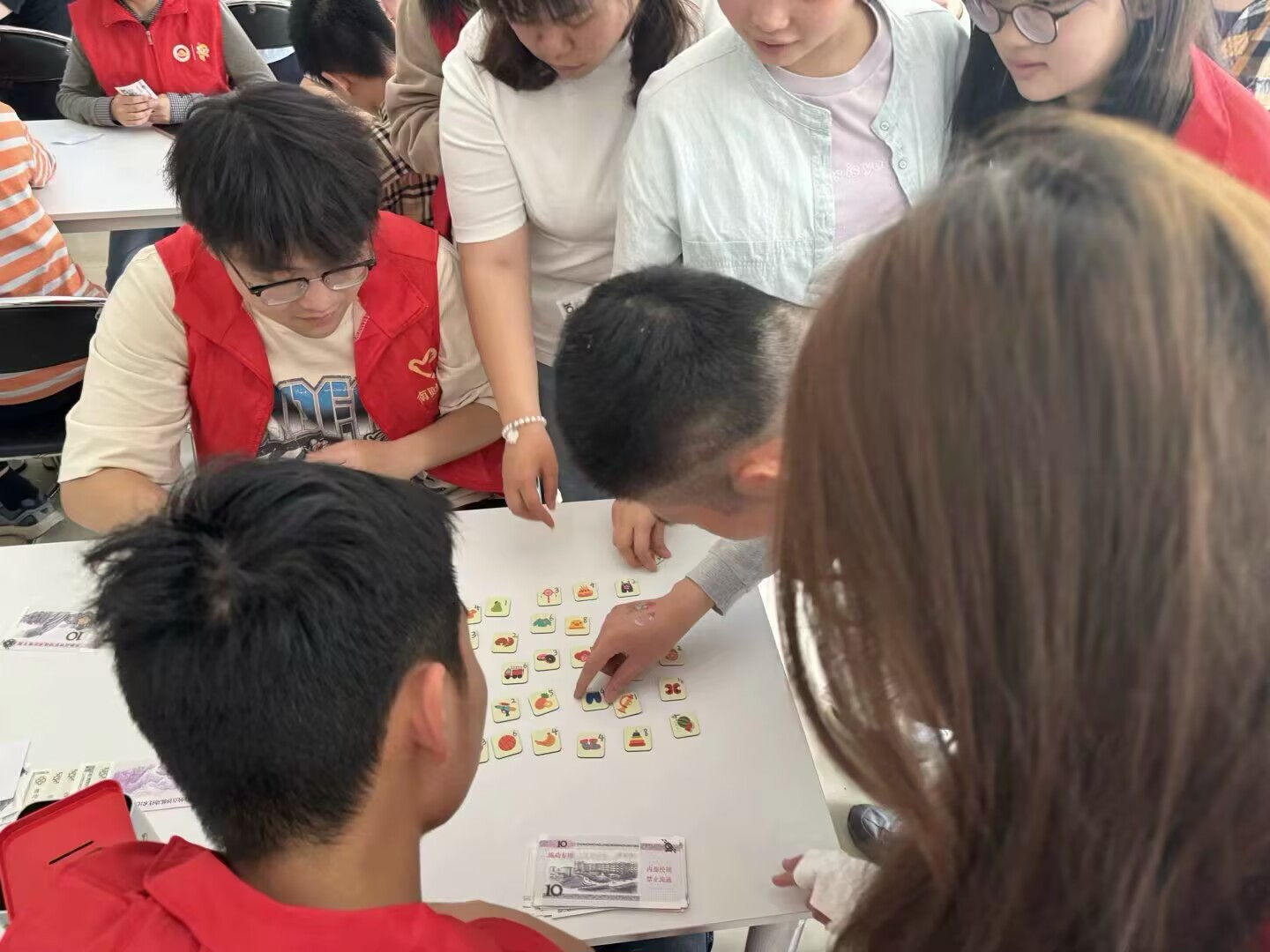 最后,志愿者與學員共同參與 “購物小掌柜挑戰賽” 和 “錢幣知識問答” 游戲。模擬購物環節考驗了學員們在實際場景中運用紙幣的能力,而問答游戲里,學員們踴躍參與,積極搶答。購物的學員認真計算購物金額,在志愿者的幫助下挑選并購買了心儀的卡片。這些貼近生活的實踐游戲,既鍛煉了學員們的貨幣應用能力,更讓他們在成功完成任務中收獲了自信與快樂。