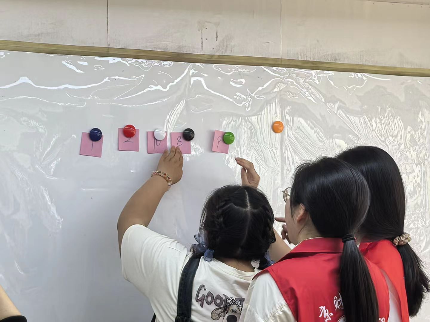 活動的最后是“統計密碼破譯員”游戲。通過解密“密碼數據”,強化了學員對平均數、中位數和眾數的理解運用。志愿者在旁耐心協助,鼓勵學員積極思考、大膽作答。通過志愿者語言和動作的引導,學員們都成功求出了相應的數據,眾人臉上都洋溢著喜悅的笑容。