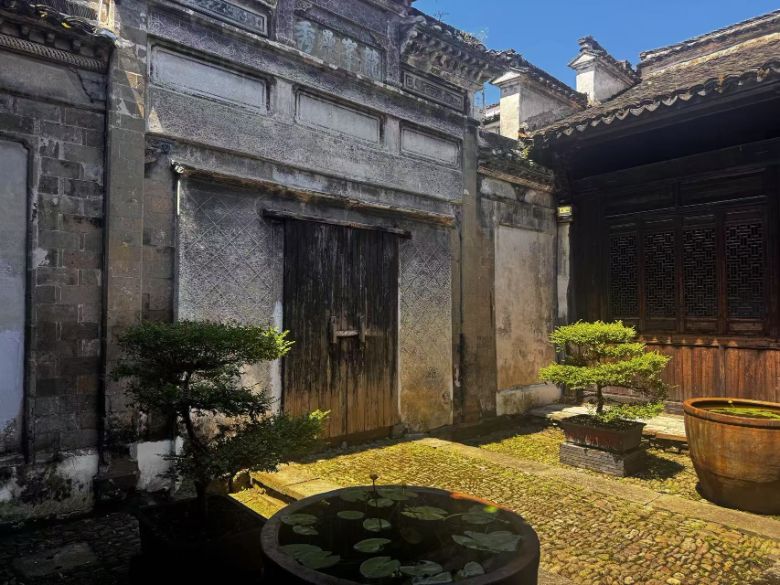六月的陽光灑在龍門古鎮蜿蜒的青石板路上,實踐團成員們緊隨講解員的腳步,穿行在鱗次櫛比的明清古巷間。斑駁的馬頭墻與精巧的木雕花窗,無聲訴說著歲月的故事。在孫權后裔聚居的核心區,講解員娓娓道來孫氏家族“耕讀傳家”的千年傳承,成員們聽得專注,不時就古建保護、家風內涵等話題與講解員輕聲交流。行至硯池邊,一泓碧水映襯著白墻黛瓦、飛檐翹角,古意盎然的美景引得大家紛紛駐足留影。