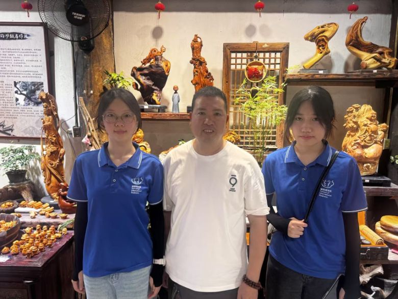 龍門古鎮的木雕手藝,是老輩人傳下來的寶貝。實踐團找到一位做木雕的老師傅聊了聊。老師傅的店里擺滿了用上好崖柏木雕刻的各種物件。他說,現在古鎮變干凈漂亮了,游客多了不少,特別是政府把孫曉梅故居、勤廉館這些紅色景點和他們木雕店串成一條“紅色研學路線”后,來參觀的學生多了很多。學生們看完紅色歷史,順道就能看看這些實打實的手藝活,店里人氣旺了不少。這種把紅色故事和老手藝結合起來的路子,既能讓年輕人記住過去,也幫老手藝找到了新活路。不過老師傅也說,店里自己開發的一些刻著勤廉館花紋、帶有清廉寓意的崖柏木雕,東西是好東西,但光靠小店自己慢慢賣,知道的人還是不夠多。他盼著鎮上能多幫忙,在線上平臺多宣傳宣傳,讓更多人知道龍門木雕這五百年的好手藝。