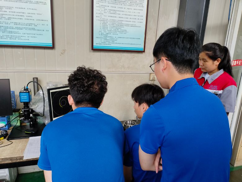 1.生產(chǎn)流程全景認知:隊員們沿生產(chǎn)線實地了解軸承磨加工及生產(chǎn)流轉(zhuǎn)過程,對金士頓科技軸承生產(chǎn)的嚴謹工序布局建立了直觀認識。