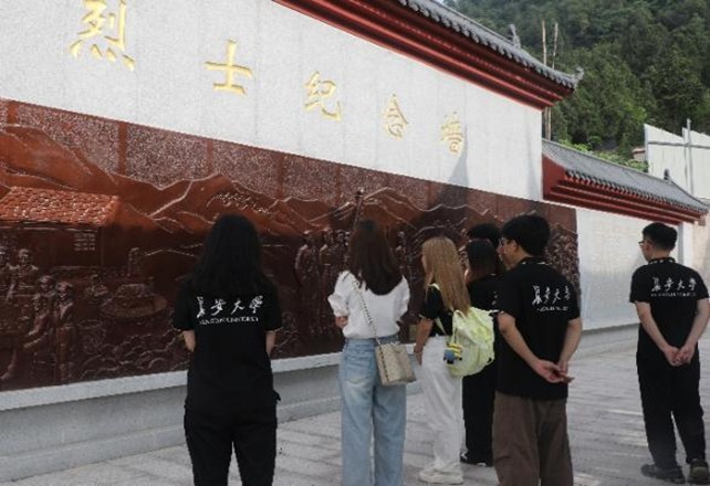 當(dāng)日上午,實踐隊抵達(dá)商南縣烈士陵園。該陵園始建于1960年7月,沿山勢自南向北呈階梯式布局。隊員們沿青石臺階緩步而上,在刻有“商南英烈千古流芳”的烈士紀(jì)念墻前駐足瞻仰,深切感悟革命先烈勇往直前的精神力量。