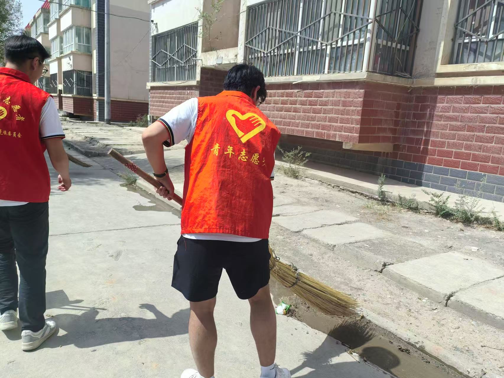 實(shí)踐團(tuán)隊(duì)打掃居民街道(攝/于思佳 阿婭拉·烏拉力別克 )