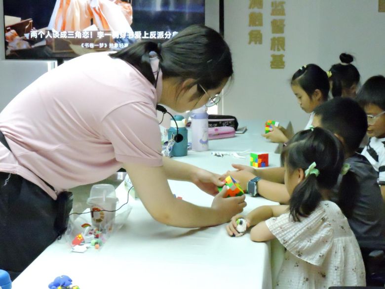 魔方啟智開慧,玩轉(zhuǎn)習(xí)技增輝 本次魔方課程涵蓋三階魔方入門、提速技巧、競(jìng)速比賽三大模塊,為小朋友帶來技能提升與綜合能力的雙重成長。三階魔方入門模塊教會(huì)小朋友們認(rèn)識(shí)魔方結(jié)構(gòu)、記住還原口訣、掌握基礎(chǔ)還原步驟,讓其感受魔方的魅力,建立學(xué)習(xí)信心,為后續(xù)能力發(fā)展打下基礎(chǔ)。提速技巧模塊幫助小朋友們優(yōu)化轉(zhuǎn)動(dòng)手法、提升反應(yīng)速度,進(jìn)一步培養(yǎng)專注力、邏輯思維與空間想象能力,推動(dòng)思維的多元發(fā)展。競(jìng)速比賽模塊則教育小朋友們?cè)诟?jìng)技中學(xué)會(huì)調(diào)整心態(tài)、合理分配精力,增強(qiáng)抗壓能力與競(jìng)爭(zhēng)意識(shí),在挑戰(zhàn)自我中深化對(duì)創(chuàng)造性思維的運(yùn)用,體驗(yàn)突破的成就感。在志愿者老師的一步步指引下,小朋友們不僅掌握了扎實(shí)的魔方技能,更全面鍛煉了多元思維與綜合素養(yǎng),真正收獲了成長與快樂。