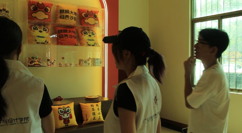 實踐團成員仔細觀摩麒麟形象的細節特征,從傳統紋樣中尋找可轉化的設計元素。“麒麟的造型里藏著民間智慧,這些圖案如果能用在農產品包裝上,既能體現地方特色,又能讓更多人了解我們的文化。” 書記助理說。團隊成員邊聽邊記錄,不時用鏡頭捕捉紋樣細節,為后續設計積累素材。