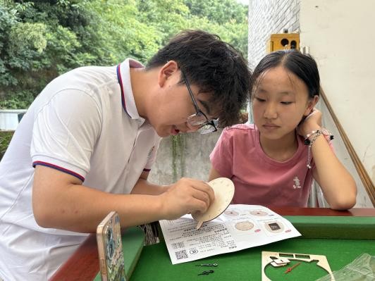 上午,實踐團隊在敘永縣正東鎮興龍村二社和小朋友一起進行科技小制作。隊員們帶領小朋友們動手拼裝小車、簡易機器人等科學玩具。當小朋友們親手組裝的玩具在指尖跳動,科學的種子也在他們的歡聲笑語中悄然傳播。