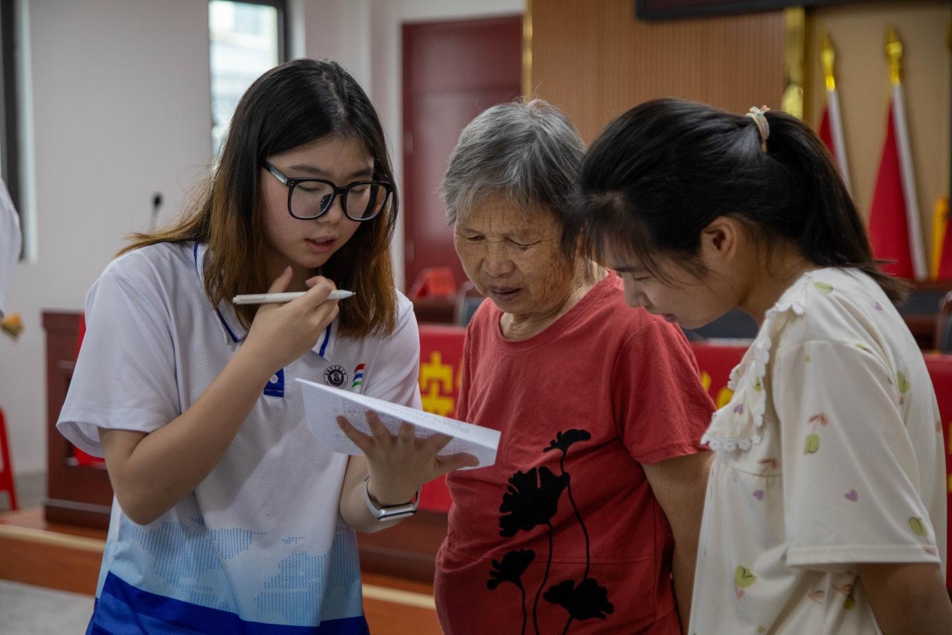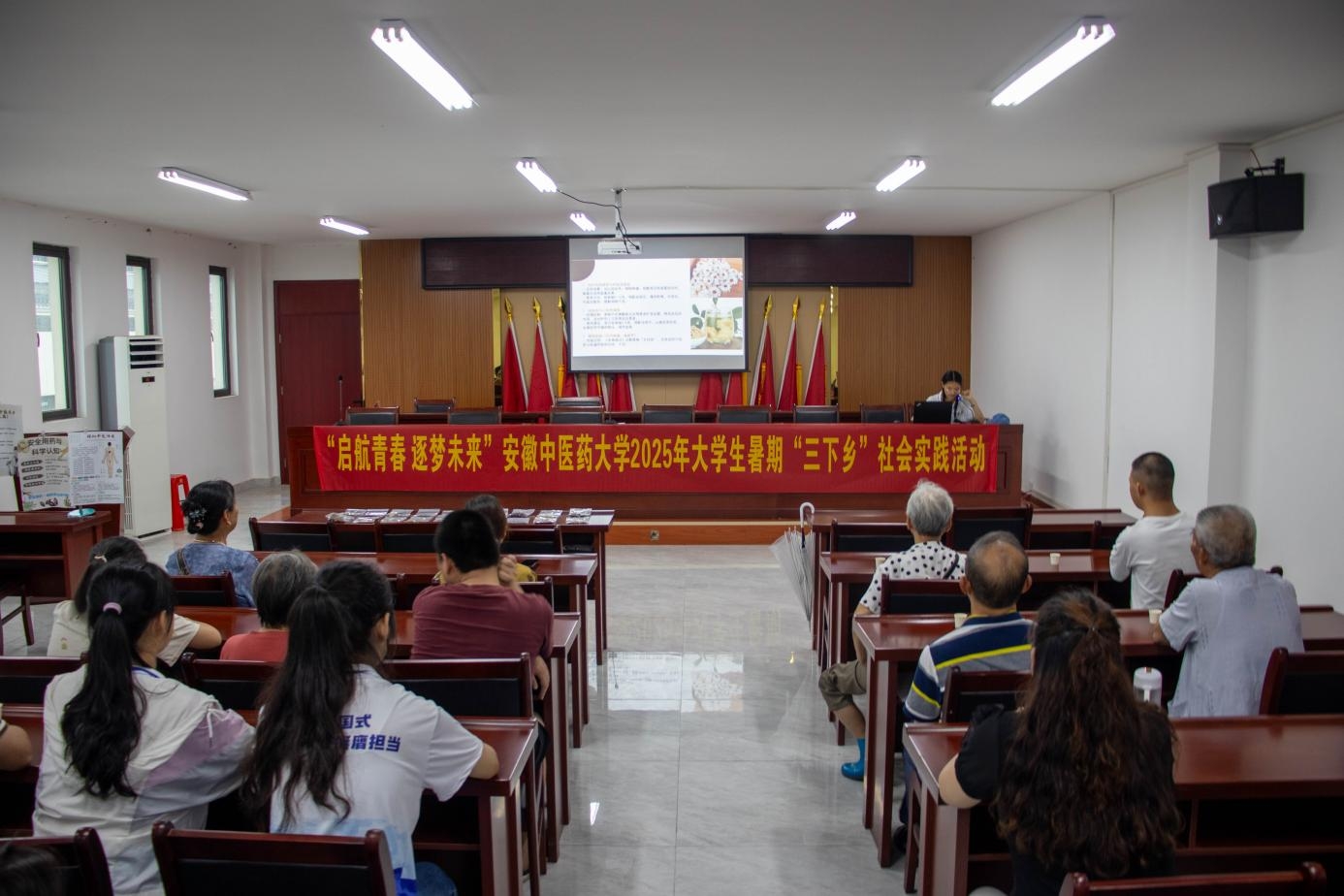 社區科普:讓中醫藥融入生活次日,實踐團來到三河鎮北街社區。在社區活動室內,居民們熱情參與。實踐團隊員為社區居民,講解中醫藥的歷史發展,科普中醫藥養生知識,從日常茶飲的功效,到二十四節氣對應的養生建議,把晦澀的中醫藥理論轉化為通俗易懂的生活小貼士。看到居民們認真傾聽、頻頻點頭,隊員們明白,這些知識正走進他們心里。
