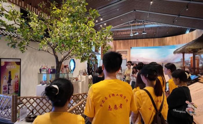 科技賦能傳統農業,透明生產守護“舌尖安全” 在桐鄉桃園村槜李堂的交流講解環節,講解員介紹,為解決槜李保質期短的問題,其常被加工成果醬、營養保健品等產品。安茗小隊深切感受到現代食品技術與傳統農業的深度融合。