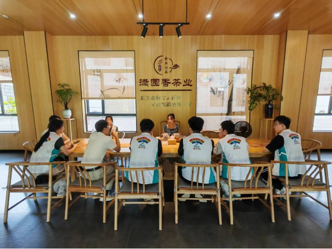 圖為實(shí)踐隊(duì)與茶業(yè)公司負(fù)責(zé)人座談交流。董欣元攝。