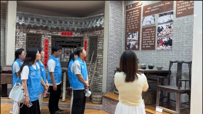 實踐隊成員們在講解員的帶領下參觀黃兒營村史館。教師教育學院暑期實踐隊通訊員 攝