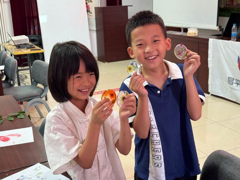 圖為融澤家園的孩子拿到“琥珀”成品后非常開心。梁楚綰 供圖