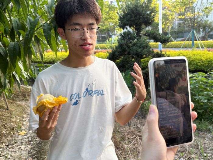 ·團隊成員室外直播宣傳水蜜桃 當訂單數字在屏幕跳動,當桃農眼角漾開由衷的笑意,成員們深知,這不僅是拓寬銷路的嘗試,更是以現代智慧為古老的饋贈插上數字翅膀,讓深藏山野的“玉露瓊漿”,乘著新時代的東風,香飄萬里,沁潤人心。這是科技賦能下,青年力量對傳統產業最深情的反哺。
