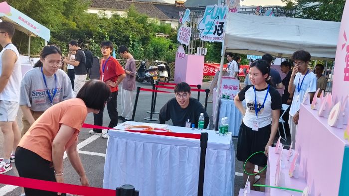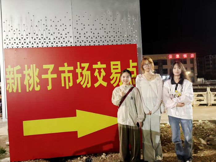 團隊成員凌晨來到桃子交易點 攤主嬢嬢“呼哧呼哧”地搖著扇子,對我們說:“大學生,年輕人方法就是多……水蜜桃,你們來宣傳呀,我們也可以輕松一些啦……”語調里,是林家村人民為進一步打響“奉化水蜜桃”名號的期盼。在調研中,“農旅織夢-浙鄉行”團隊能看見銷售渠道的單一,更能察覺出鄉親們對“林間玉露”仍為璞玉的不甘。這份深入桃林的調研,是一本厚重的“無字書”,它無聲訴說著鄉土的深沉、產業的陣痛、以及那如桃樹般堅韌生長的振興渴望。讀懂這份期盼,是青春接枝鄉土的第一課——俯身,將心貼近泥土,方能感知時代最真實的溫度。