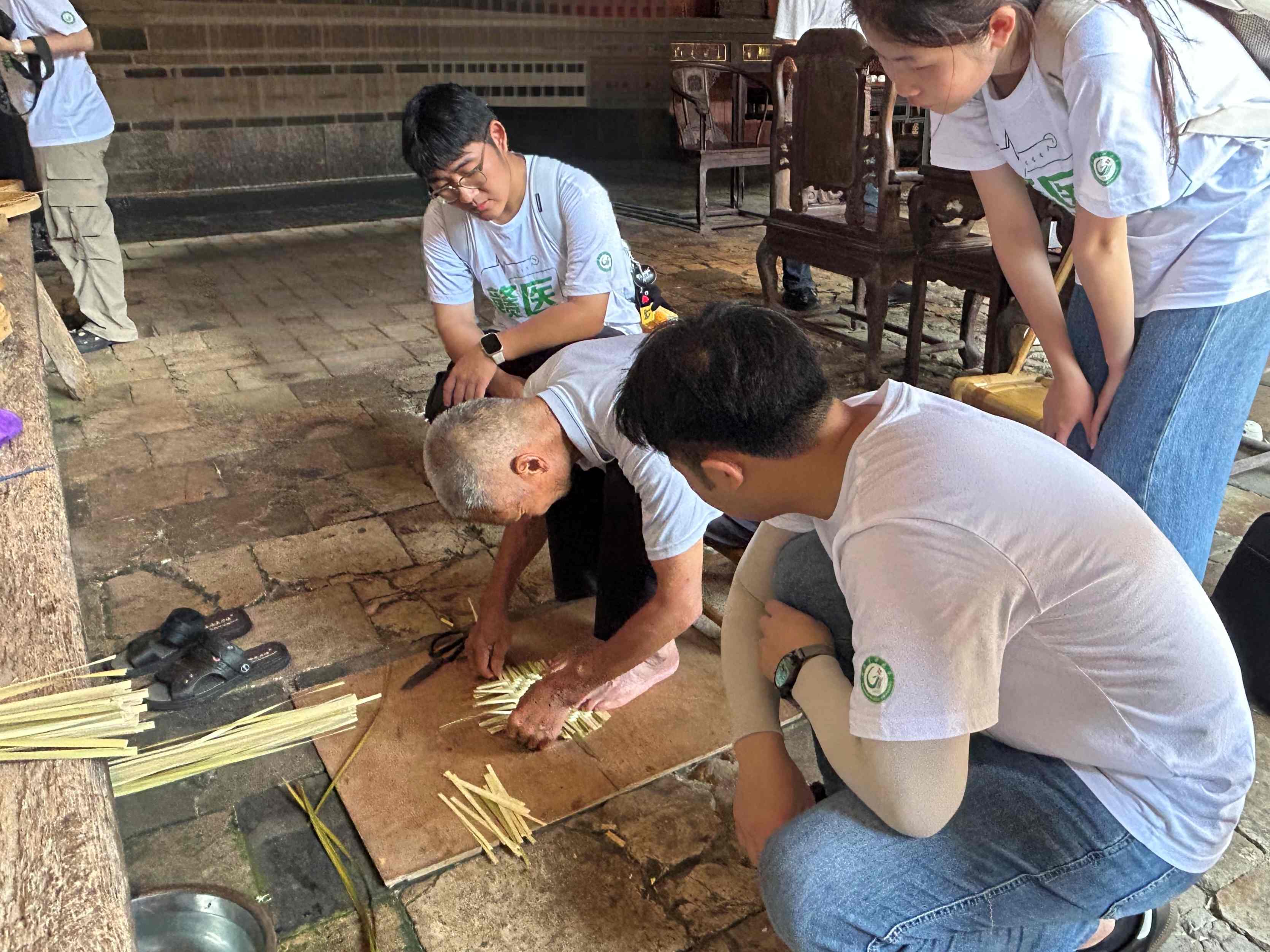 非遺傳承人的工作室里,故事更動人。織帶藝人王婆婆,指尖翻飛間將五彩絲線織成“福”字紋;竹編師傅劉大爺,用篾條編出的竹籃細密如網;剪紙藝人陳阿姨的剪刀下,客家婚慶場景躍然紙上。“老手藝里有祖宗的智慧,”隊員們說,他們用鏡頭記錄下這些瞬間,計劃做成短視頻讓更多人看見客家非遺的魅力。