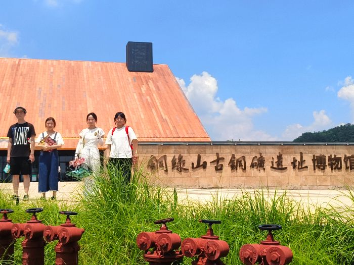 銅綠山古銅礦遺址博物館前的合影 楊志慧攝
