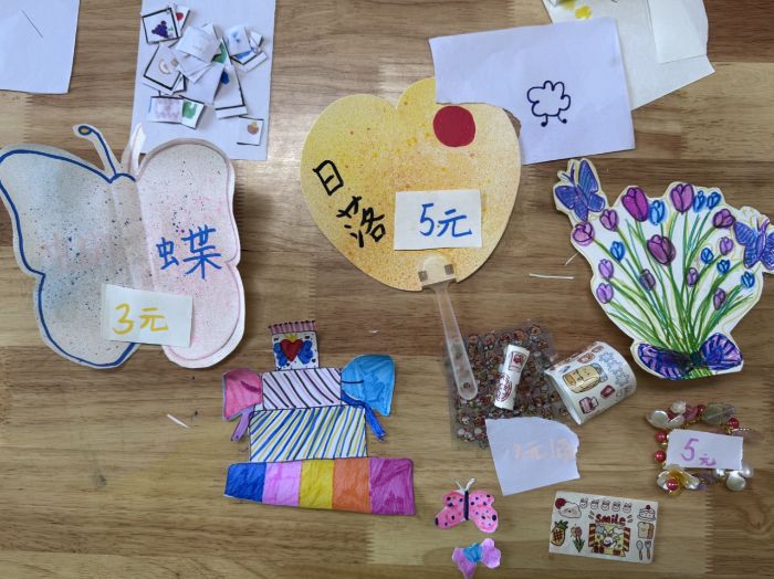 活動前,志愿者追溯貨幣從“貝殼交易”到“電子支付”的演變史,深入淺出地解析等價交換、成本核算、利潤計算等經濟學原理,并指導學生手繪仿五銖錢。隨后“禾風集市”正式開張,學生分組擺攤,為手工藝品合理定價,主動與“顧客”議價交易。在一來一往的互動中,抽象的數學知識與經濟原理變得可感可觸,學生們真切體會到勞動成果向商品價值的轉化,財商意識與實踐能力也得到扎實鍛煉。