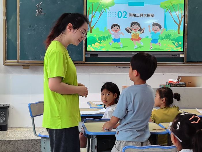 圖為服務隊為學生講解數學知識及其應用。王彤攝