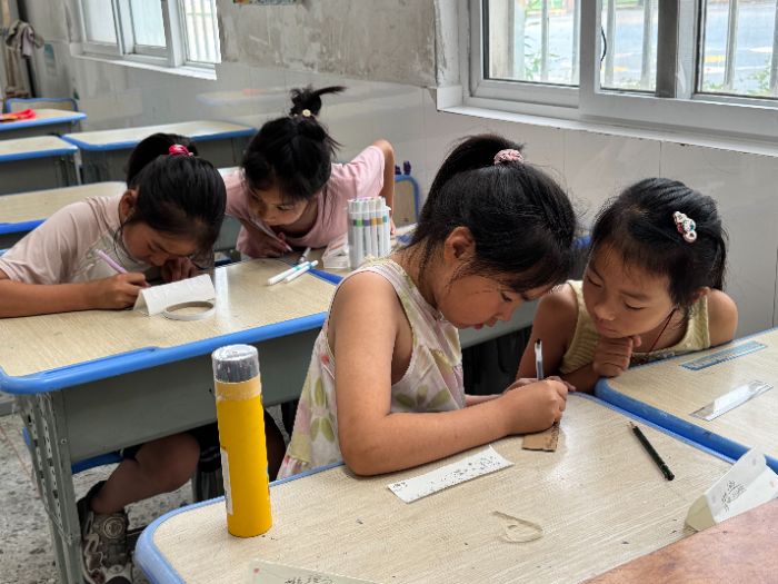 圖為孩子們在禾風集市中定價議價并自制貨幣。孫婧煜攝