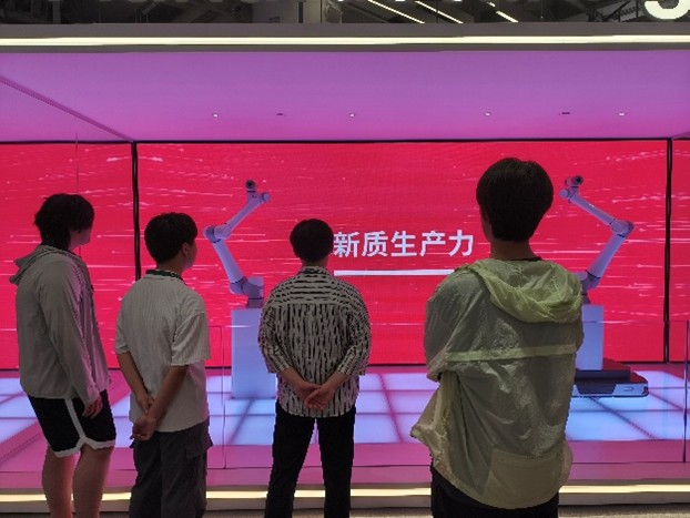 在新質(zhì)生產(chǎn)力展館內(nèi)智能微工廠的精密運作模型、物流供應(yīng)鏈的全流程數(shù)字化演示等項目錯落分布,科技感與實用性交融的展示,讓隊員們直觀感受到新質(zhì)生產(chǎn)力對制造業(yè)、服務(wù)業(yè)的重塑力量——從電子元件的智能分揀到定制化生產(chǎn)的柔性調(diào)度,每一處細節(jié)都彰顯著技術(shù)創(chuàng)新的實踐價值。