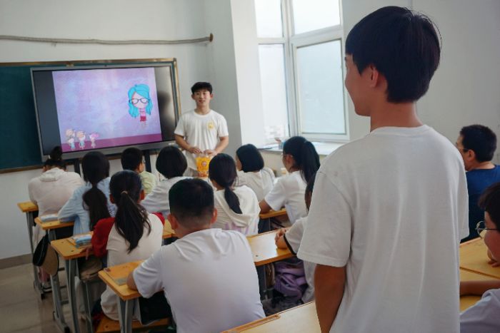 實(shí)踐團(tuán)成員給學(xué)生講課圖片林予淳攝