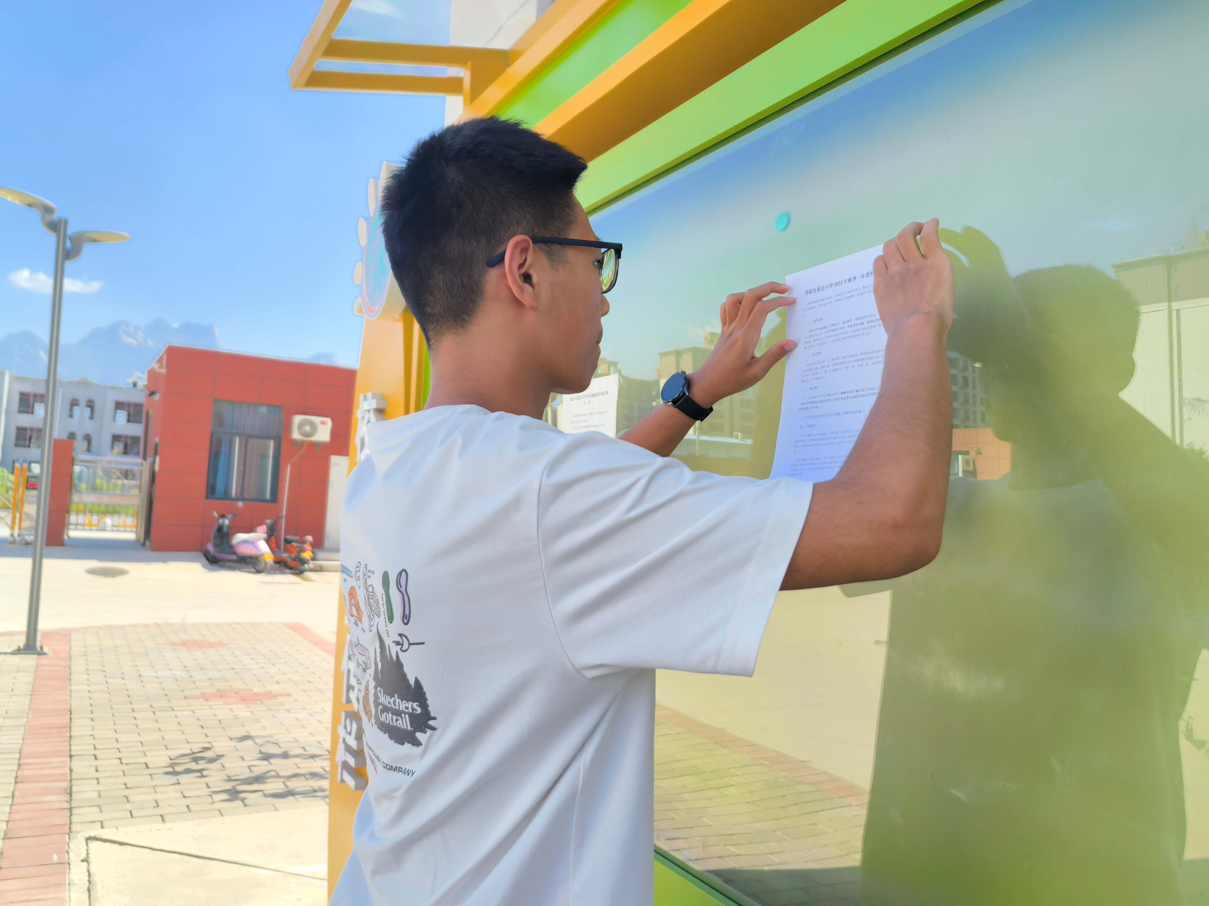 7月18日,他率先投入前期準備:在老師指導下仔細熟悉招生公告內容,吃透報名時間、材料清單等核心信息后,獨自前往學校周邊社區公告欄、居民區出入口等點位張貼公告,遇到咨詢的家長時,也會簡要講解政策要點,確保招生信息精準觸達。