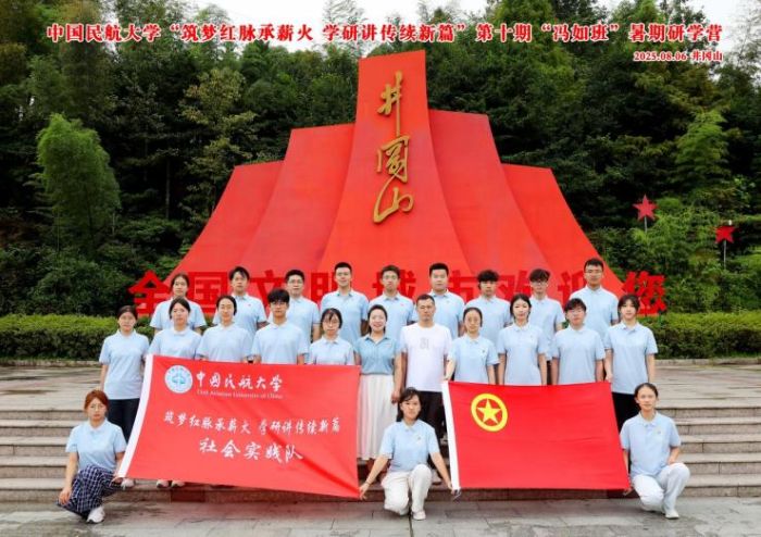 8月5日至11日,中國民航大學(xué)嚴(yán)實(shí)團(tuán)校“馮如班”社會實(shí)踐隊(duì)的23名師生,踏上了江西井岡山、南昌、瑞金三地的紅色征程,以“筑夢紅脈承薪火,學(xué)研講傳續(xù)新篇”為主題開展沉浸式實(shí)踐。這支以中國航空先驅(qū)馮如命名的隊(duì)伍,將思政課堂延伸至革命圣地,在歷史現(xiàn)場感悟精神力量,上了一堂“飛向祖國大地的思政課”。