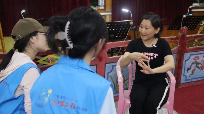 線上籌備自4月啟動,團隊完成行程規劃、任務分配與物資準備;線下實踐分兩階段展開,首階段聚焦實地文化探訪,次階段深入企業感受創新活力,最終形成豐富素材庫,為后續傳播奠定基礎。 多維探訪:文化與產業相互碰撞 在33小鎮的文創空間里,實踐團體驗氣球派對制作的巧思,在華南美術館的展廳中捕捉藝術靈感,在青花書房咖啡館傾聽主理人的創業故事,更讓團隊看到青年創意與城市發展的共振。溫塘社區的粵劇排練廳內,業余表演者們以熱愛為火種,讓傳統唱腔在方寸空間里煥發新生,成員們通過采訪與觀摩,觸摸到非遺文化傳承的溫度。