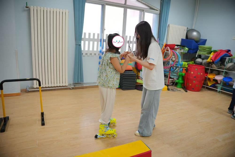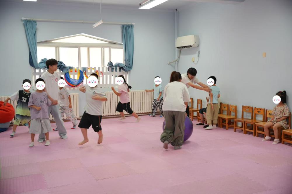 7月28日至8月1日,服務隊持續在濱海學院特教中心開展服務。隊員們通過一對一課業輔導、感統訓練、輪滑教學、水槍游戲等活動,耐心協助教師完成教學任務,密切關注特殊兒童的認知和行為表現,在跳繩、啞鈴、跨越障礙等訓練中提升孩子的身體協調能力。室內自由活動時間里,隊員們陪伴孩子完成鉆石貼畫、共讀圖畫書,在細致互動中培養其專注力和表達能力。此外,隊員們還積極承擔后勤保障、安全看護與應急處理等工作,全面保障每日活動順利開展。