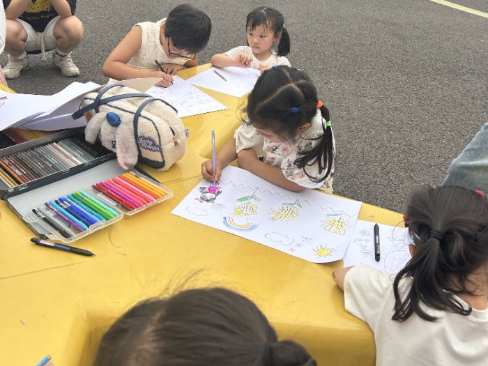 創意拼貼:環保理念的藝術表達 7月13日上午,首場活動"綠色環保卡紙作品制作"在吳家場社區拉開帷幕。志愿者以啟發式提問開啟課堂:"如果垃圾不分類,會對環境造成什么影響?""為什么綠色對地球很重要?"孩子們爭相舉手,踴躍回答,現場氣氛熱烈活躍。