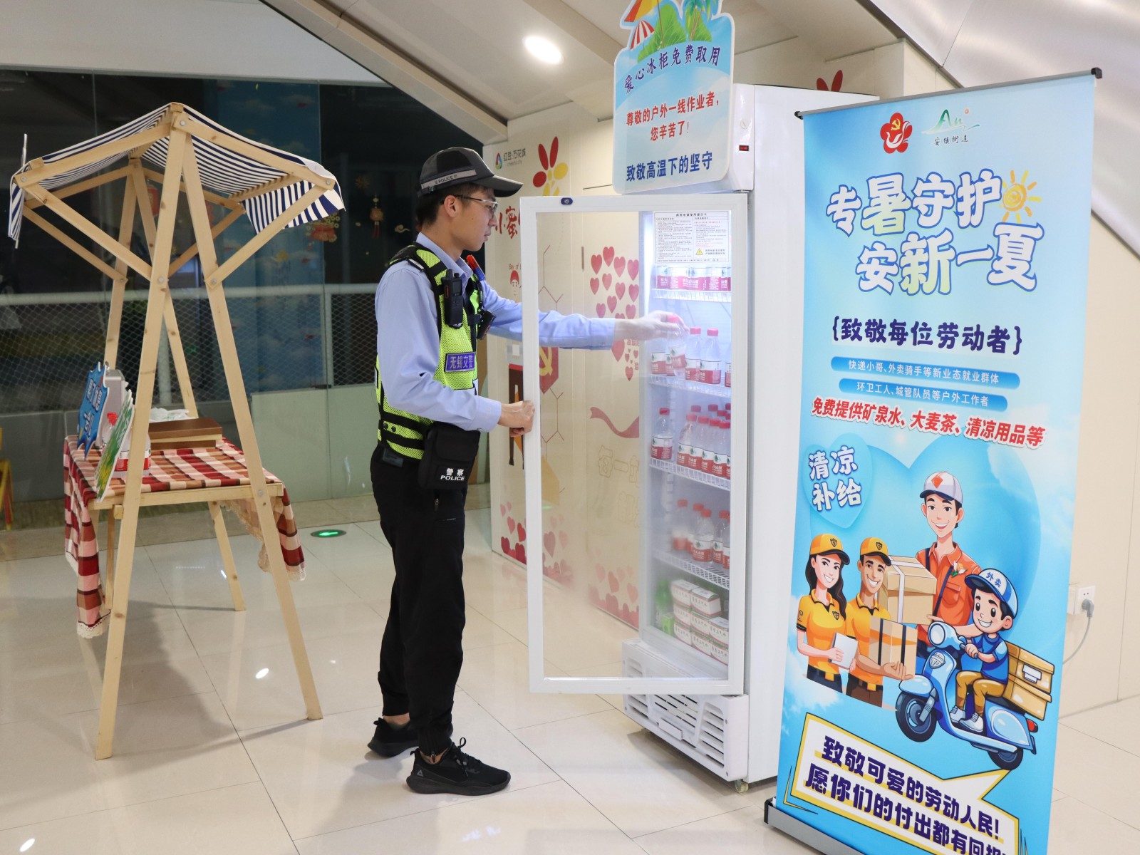 圖3交警在愛心冰柜取飲畫面