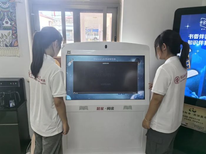 圖為實踐團成員參觀農講堂電子大屏+許菁攝 “古將擘光”,旨在為古將村點亮知識之光。實踐團針對鄉村兒童成長需求,打造“手語+地質”雙特色課堂,讓溫暖與科學在孩子們心中扎根。