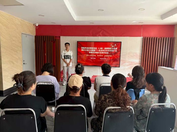 調(diào)研之初,我們將核心目標(biāo)聚焦于“打通理論與實(shí)踐的壁壘”,走進(jìn)社區(qū)進(jìn)行調(diào)研。社區(qū)是技術(shù)普及的“最后一公里”,也是公眾認(rèn)知的“晴雨表”。7月31日在東營(yíng)市廣饒縣陽關(guān)花苑社區(qū)、8月1日在棗莊市礦區(qū)街道東花園社區(qū)的的走訪,讓我們看到了公眾對(duì)自動(dòng)駕駛認(rèn)知的“溫差”。年輕業(yè)主雖關(guān)注技術(shù),但對(duì)“系統(tǒng)與駕駛員接管切換”“事故維權(quán)流程”等核心法律問題一知半解;中老年群體則多持觀望態(tài)度,擔(dān)心“出了事沒人擔(dān)責(zé)”。在東花園,一位業(yè)主的提問“小區(qū)里自動(dòng)駕駛車剮蹭了,是找車主還是找車企?”,直接推動(dòng)我們制作了《自動(dòng)駕駛安全駕駛法律指南》普法手冊(cè),用“案例+流程圖”的形式,把復(fù)雜的責(zé)任劃分問題講清楚,我們還與居委會(huì)約定設(shè)置“自動(dòng)駕駛法律科普角”,讓普法從“一次性宣講”變成“常態(tài)化服務(wù)”,這種“從需求出發(fā)”的實(shí)踐方式,比單純的問卷調(diào)研更有意義。