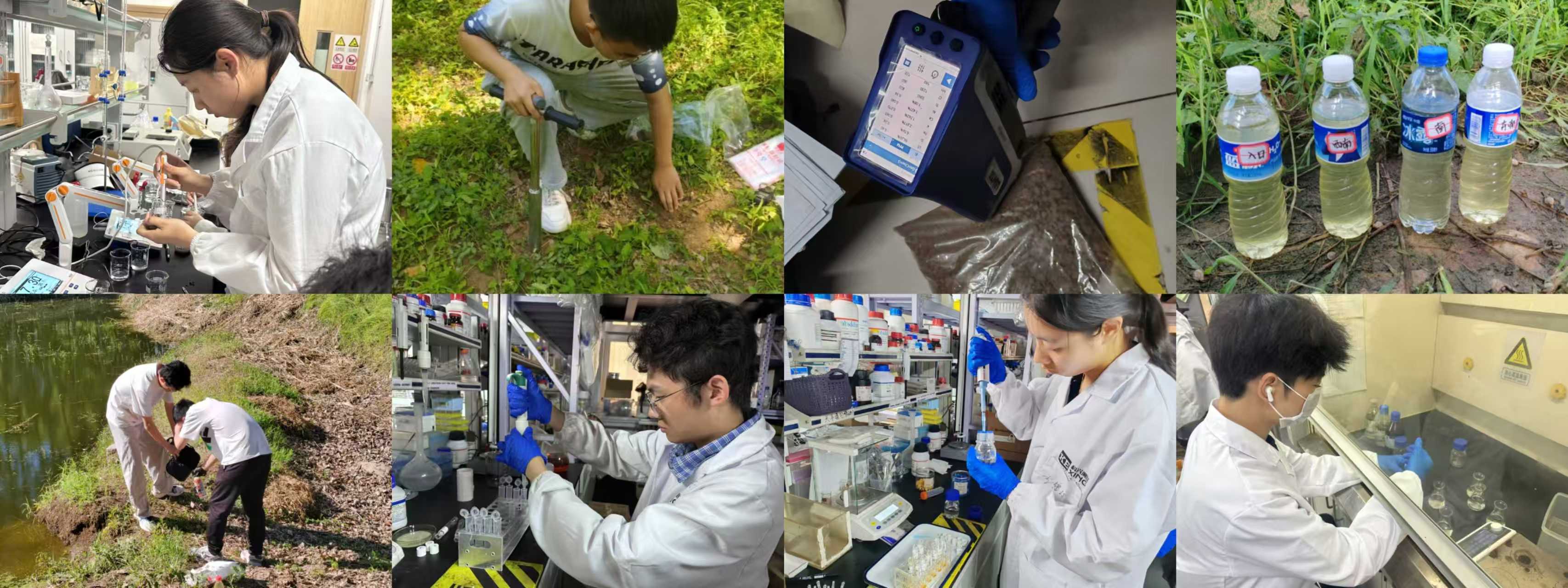 期間,成員們深入坑塘河道、林地土壤開展土壤與水質(zhì)采樣,對污染區(qū)域多項(xiàng)指標(biāo)進(jìn)行系統(tǒng)監(jiān)測,包括水質(zhì)指標(biāo)(COD、氨氮、總磷)、土壤指標(biāo)(重金屬、電導(dǎo)率、揮發(fā)物)等,將校內(nèi)課本知識運(yùn)用到校外試驗(yàn)田中,依托數(shù)據(jù)精準(zhǔn)定位污染源頭,并結(jié)合文獻(xiàn)檢索、走訪調(diào)研、座談商討明確治理方向,最終形成切實(shí)可行的治理方案和林地種植作物建議。