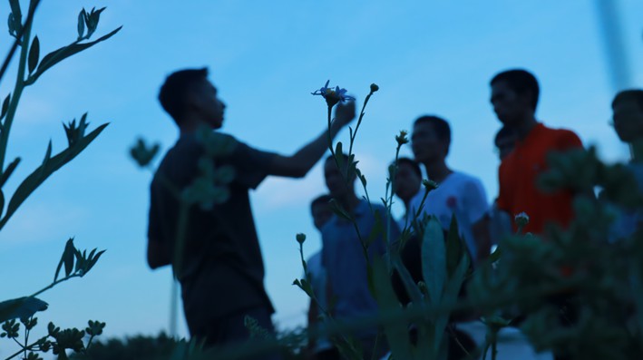 7月24日,服務隊歷時14小時,行軍拉練30公里,用腳步丈量祖國大地,用行動磨礪意志品格。拉練途中,服務隊舉辦了山間詩詞大會和山間歌會,《清平樂·會昌》《青春萬歲》《我愛這土地》《保衛黃河》《四渡赤水出奇兵》等節目紛紛出演,幸福的歌聲傳遍山間田野。