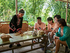 (圖片6:實踐團成員體驗拉祜族編制技藝)