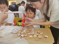 7月7日,浙江工商大學食品與生物工程學院社聯微塵小隊留校實踐團頂著炎炎烈日,前往了錢塘區白楊街道鄰里社區。留校實踐團給本次活動的主角“小候鳥”上了一節甜品制作課并且對他們進行了采訪。