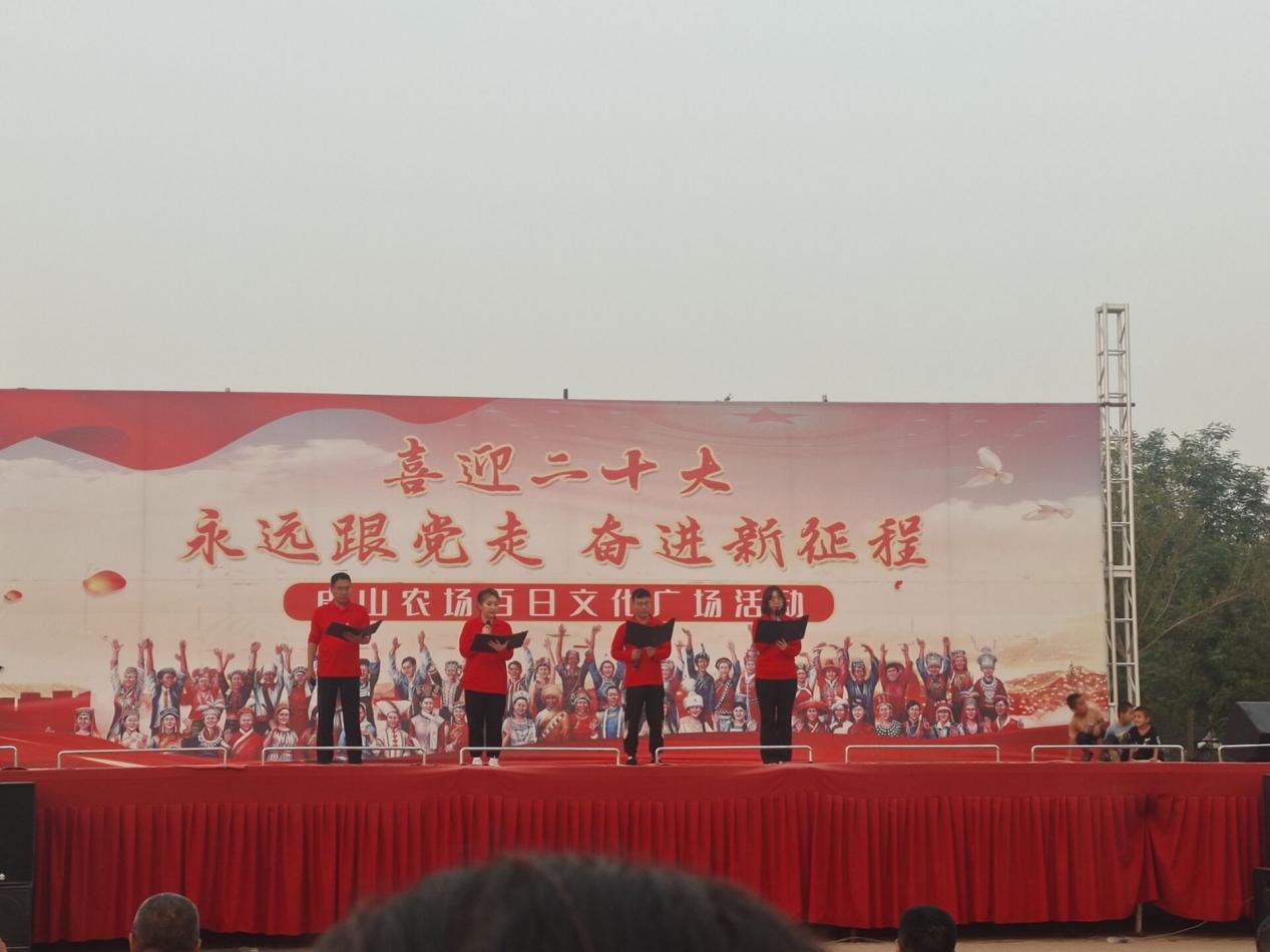 簡單熟悉過后,我們被分配到各個連隊,我們認識了李書記,他根據我們的專業所長,為我們分配了工作培訓和指導。在連隊我們有幸參與了“喜迎十二大 歡歌頌給黨”的文藝匯演活動,在活動中我們積極參與,努力發揮所長,將我們最好的一面展示在聯隊群眾面前,我們牢記“文化潤江”的方針,積極迎合隊里的工作指示,將我們青年大學生的責任與擔當落實到實地,我們堅決聽從黨的指揮,盡心盡力做好為人民服務的每一項工作。我參加了開場舞《為祖國喝彩》和詩朗誦《歡歌頌給黨》。我們一遍一遍不斷地扎實我們的排練技巧。在大家的共同努力下我們這次的活動舉行的非常成功,活動的完美結束給這兩天的排練交上了完美的答卷,結束后我們一起合影留念,幫助他們撿垃圾、回收發放的小國旗、幫助他們開展收尾工作,今天格外有意義。