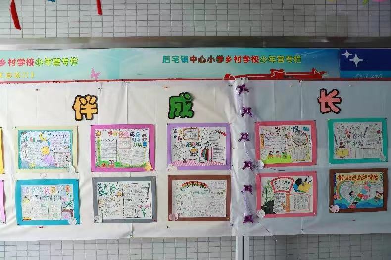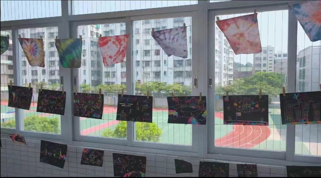 在支教的同時,益教微光社會實(shí)踐隊(duì)隊(duì)員與老師將同學(xué)們在藝術(shù)課堂、暑期完成的優(yōu)秀作品進(jìn)行收集并加工,通過舉辦成果展的形式來展示學(xué)生所創(chuàng)作的優(yōu)秀作品,其中成果展分為幾個部分,分別是“請黨放心,強(qiáng)國有我”主題的紙貼畫展、傳統(tǒng)文化剪紙繪畫展、社會主義價值觀掛牌展、手工扎染和刮畫展、繪畫、手抄報及手工作品展。